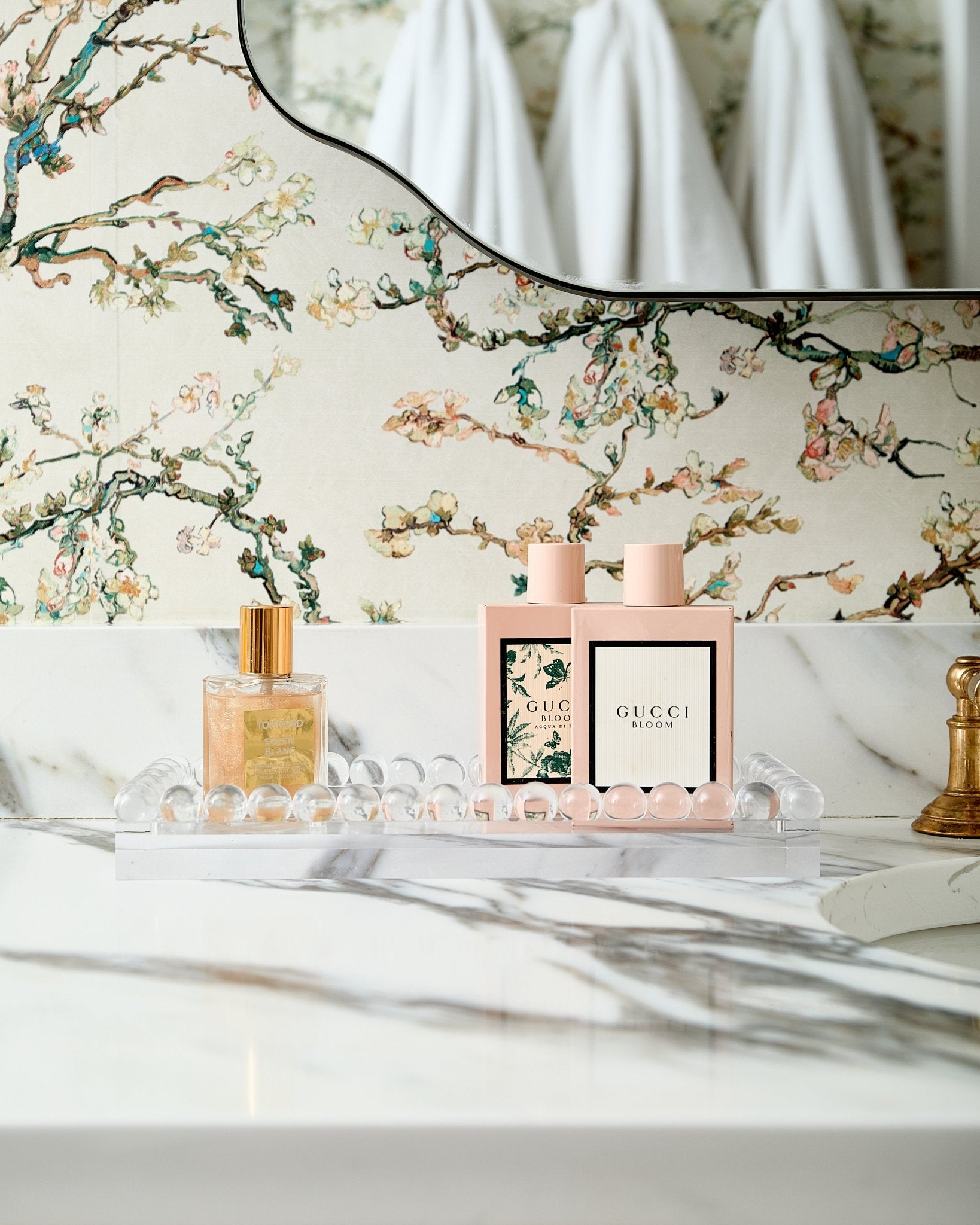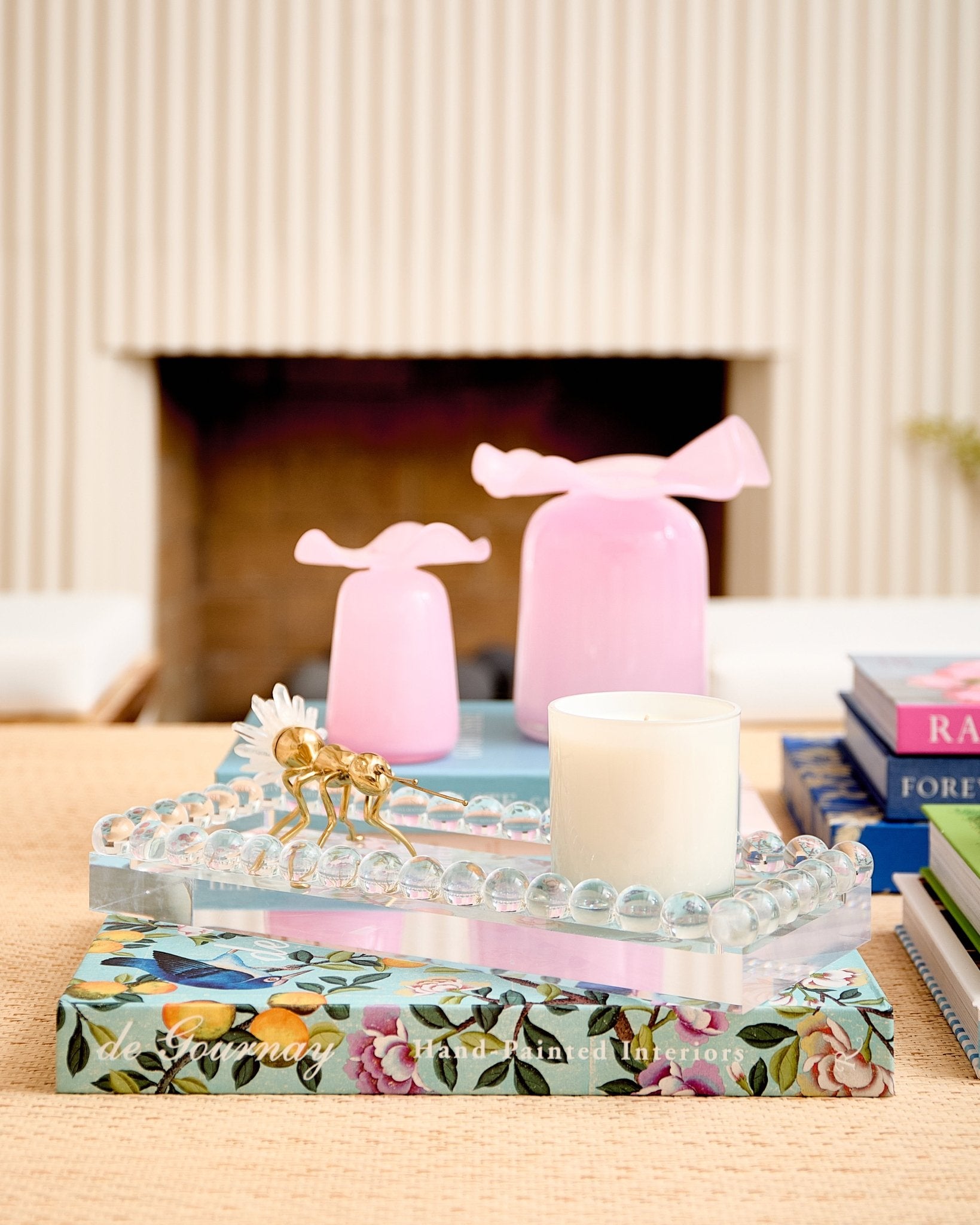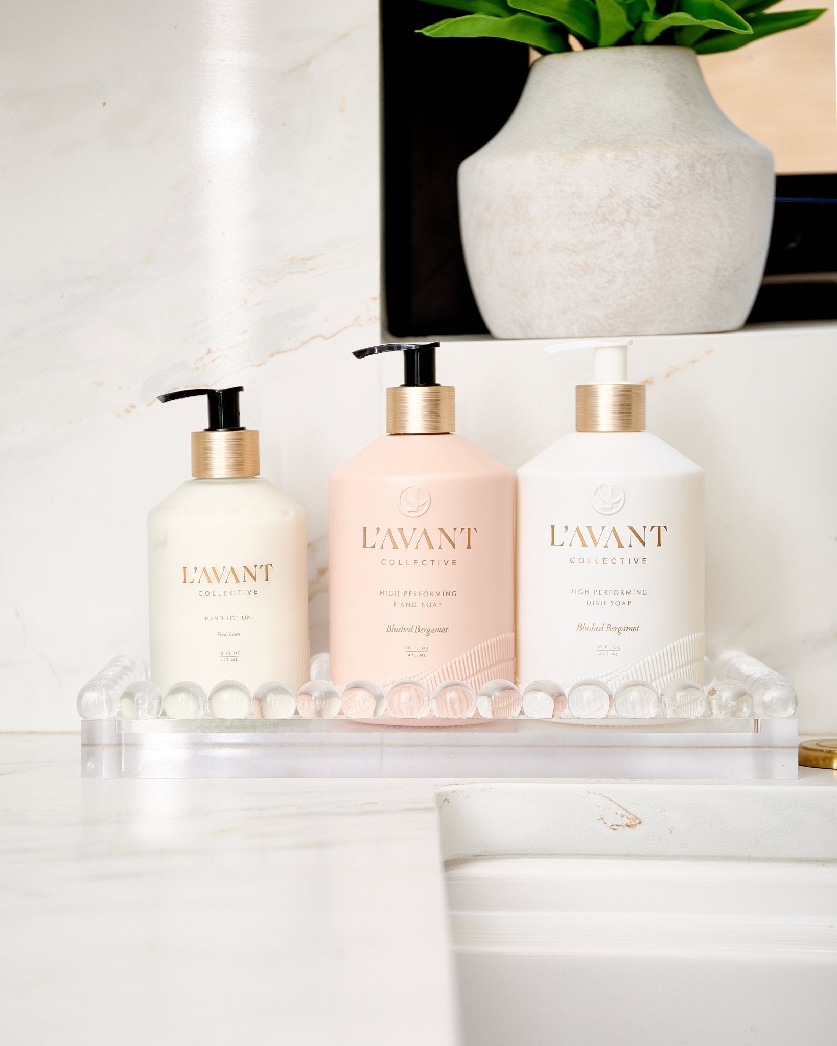 Our large Bubble Large Lucite Tray is the biggest of the collection, giving you plenty of room to style and organize. It perfectly fits three bottles of soap or lotion, or try two bottles with a scrub brush for a polished sink setup. Beyond the bathroom, it doubles as a chic display for jewelry, perfumes, or even guest towels. With its clear acrylic and playful bubble trim, this tray is both practical and stylish, making it the ultimate statement piece for any space.