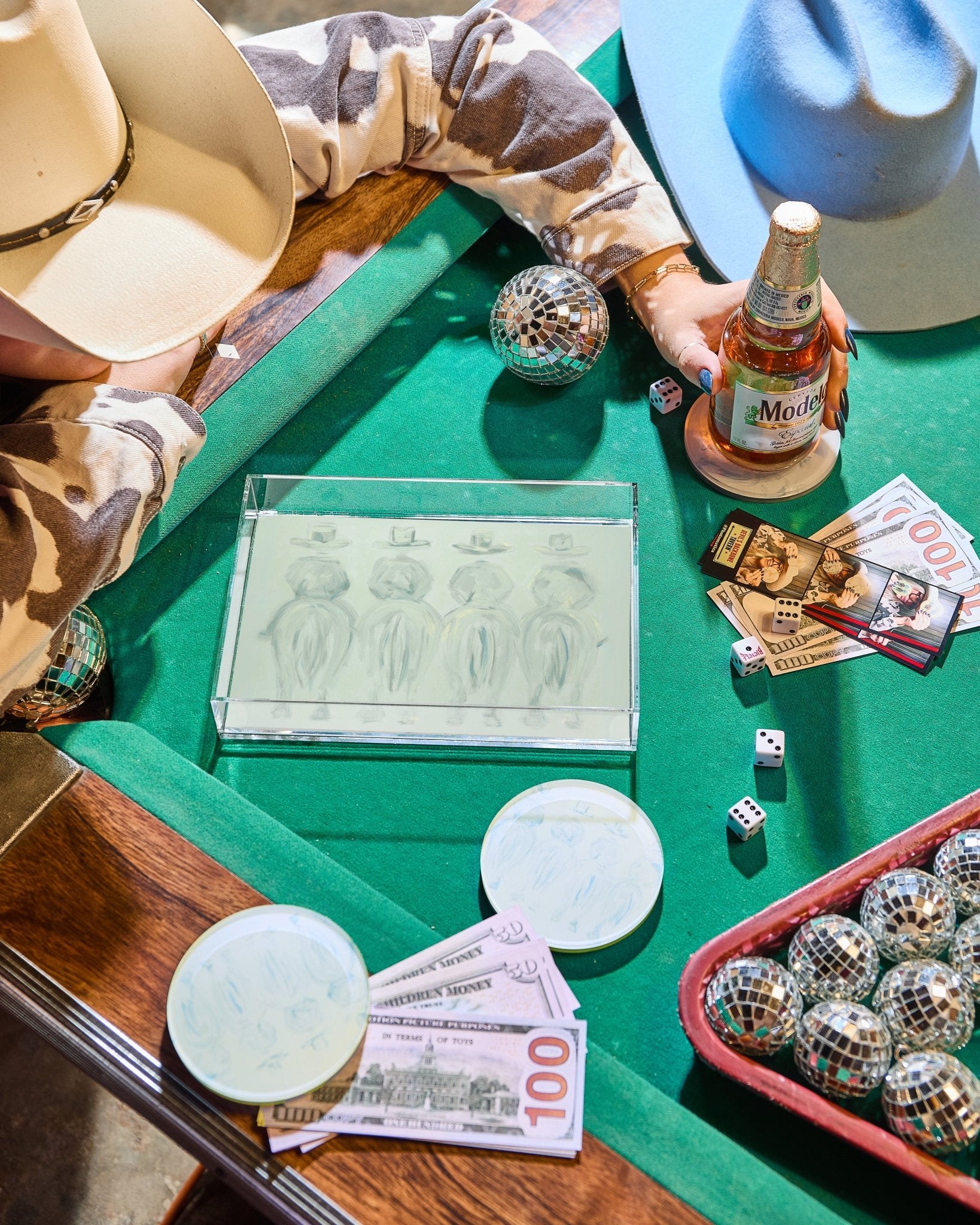 Add a little yeehaw to your everyday! This petite acrylic tray features Emma Katherine’s signature western artwork, packed with color, charm, and a dash of southern sass. Perfect for jewelry, keys, or your favorite cocktail napkins, it’s a small but mighty statement piece that brings a playful pop of the Wild West to any space.