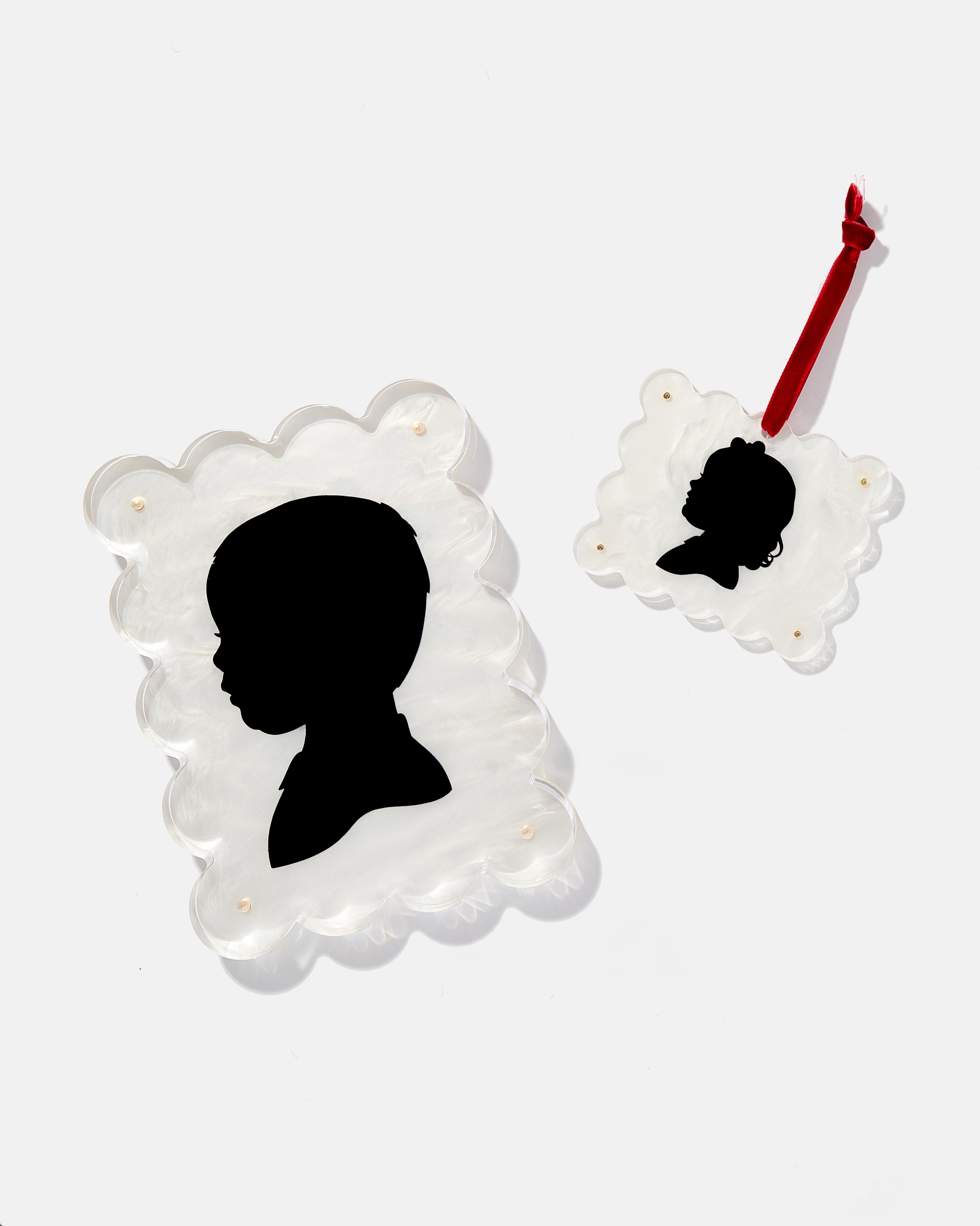 For a limited time only we’ve teamed up with Designs Undone to bring you the sweetest bundle. Just upload a photo, and Designs Undone will create a custom silhouette. You’ll receive the silhouette beautifully framed in a 5x7 acrylic frame and a matching ornament frame. Normally $128, but now just $108 — the perfect bundle and save moment!