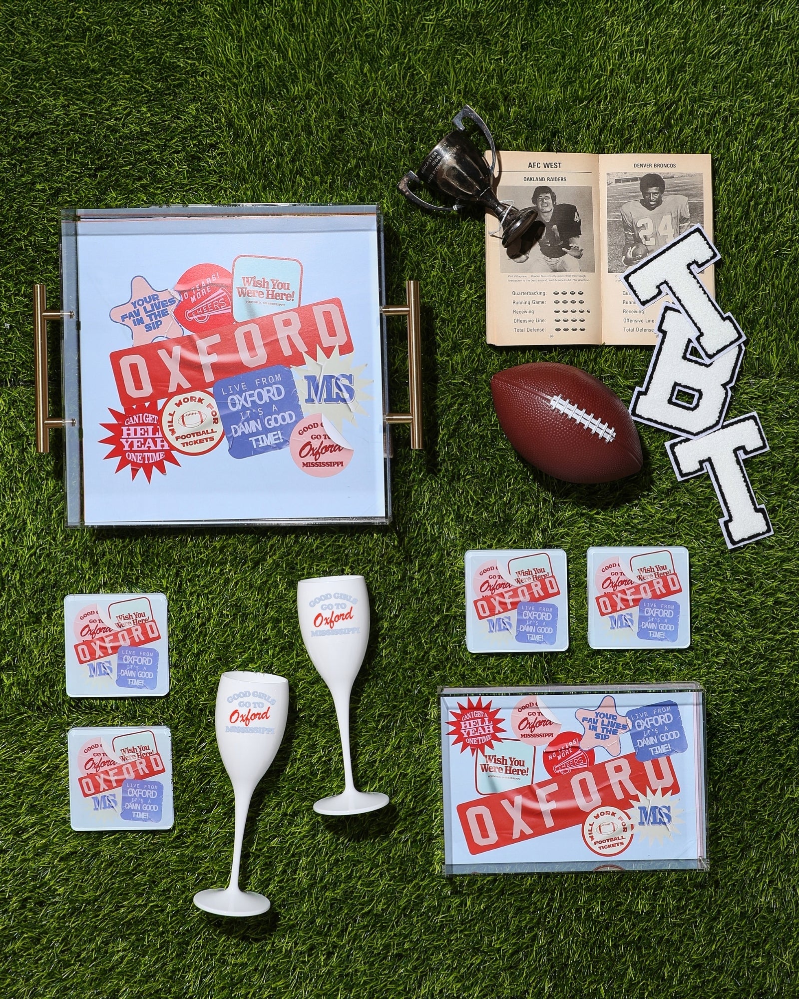 Serving school spirit! Our Large Acrylic Tray with Gold Handles from the Tailgate Collection is your ultimate hosting statement piece. Featuring a bold, college inspired sticker design, this tray brings all the fun of game day with an elevated, polished feel.